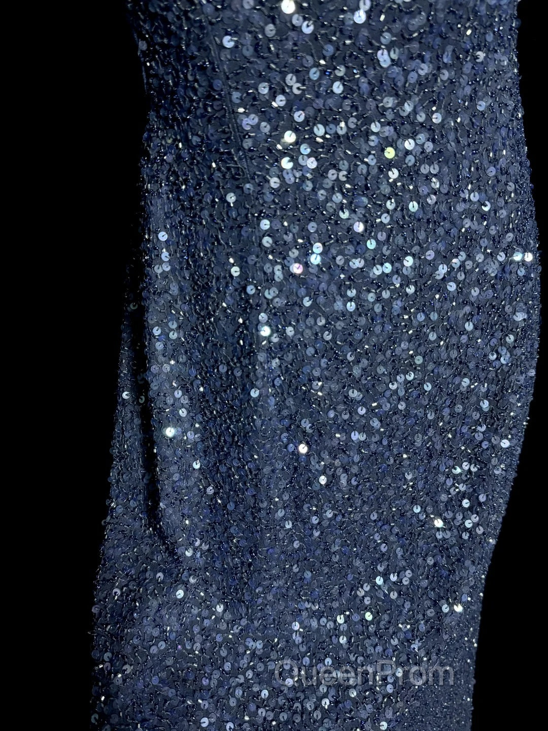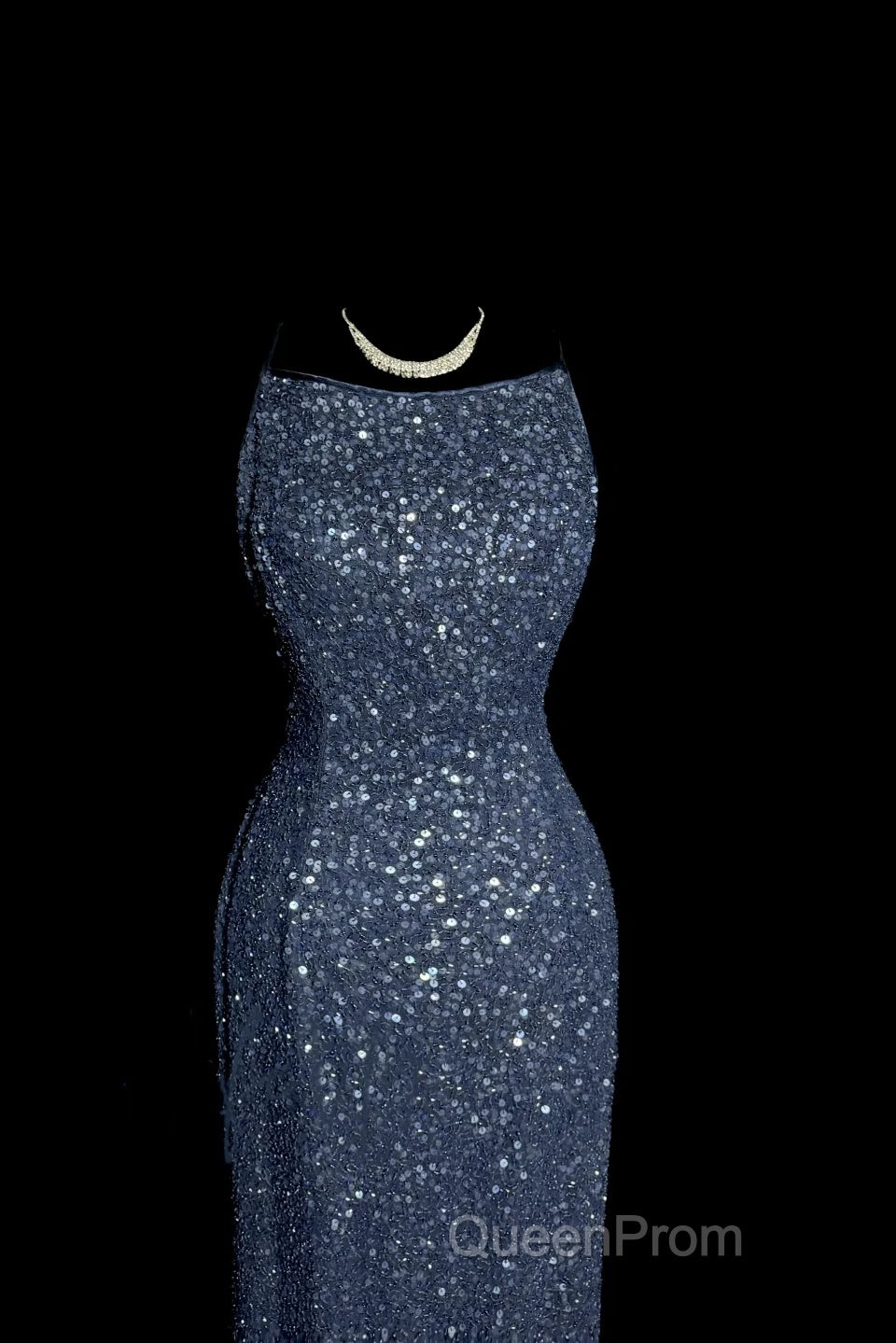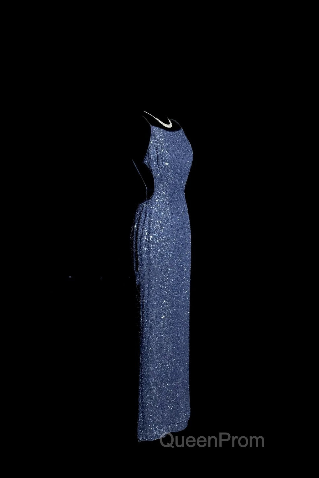 Vintage Mermaid Boat Neck Blue Sequin Backless Evening Prom Gown Fairy Evening Prom Dresses