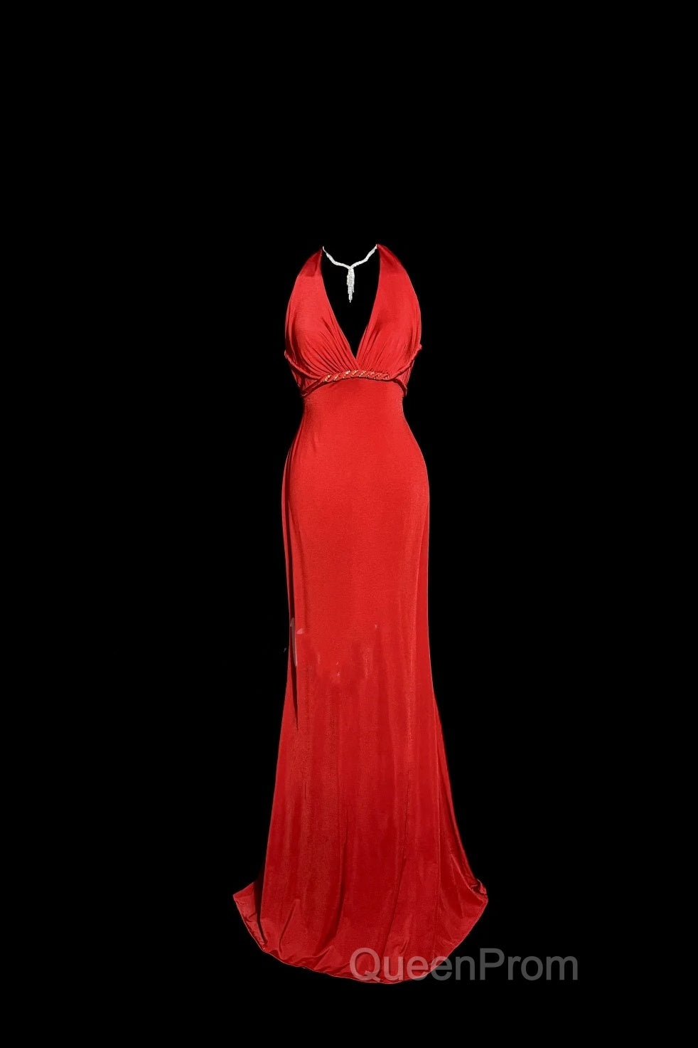Vintage Mermaid Halter Satin Red Evening Prom Gown Fairy Evening Prom Dresses