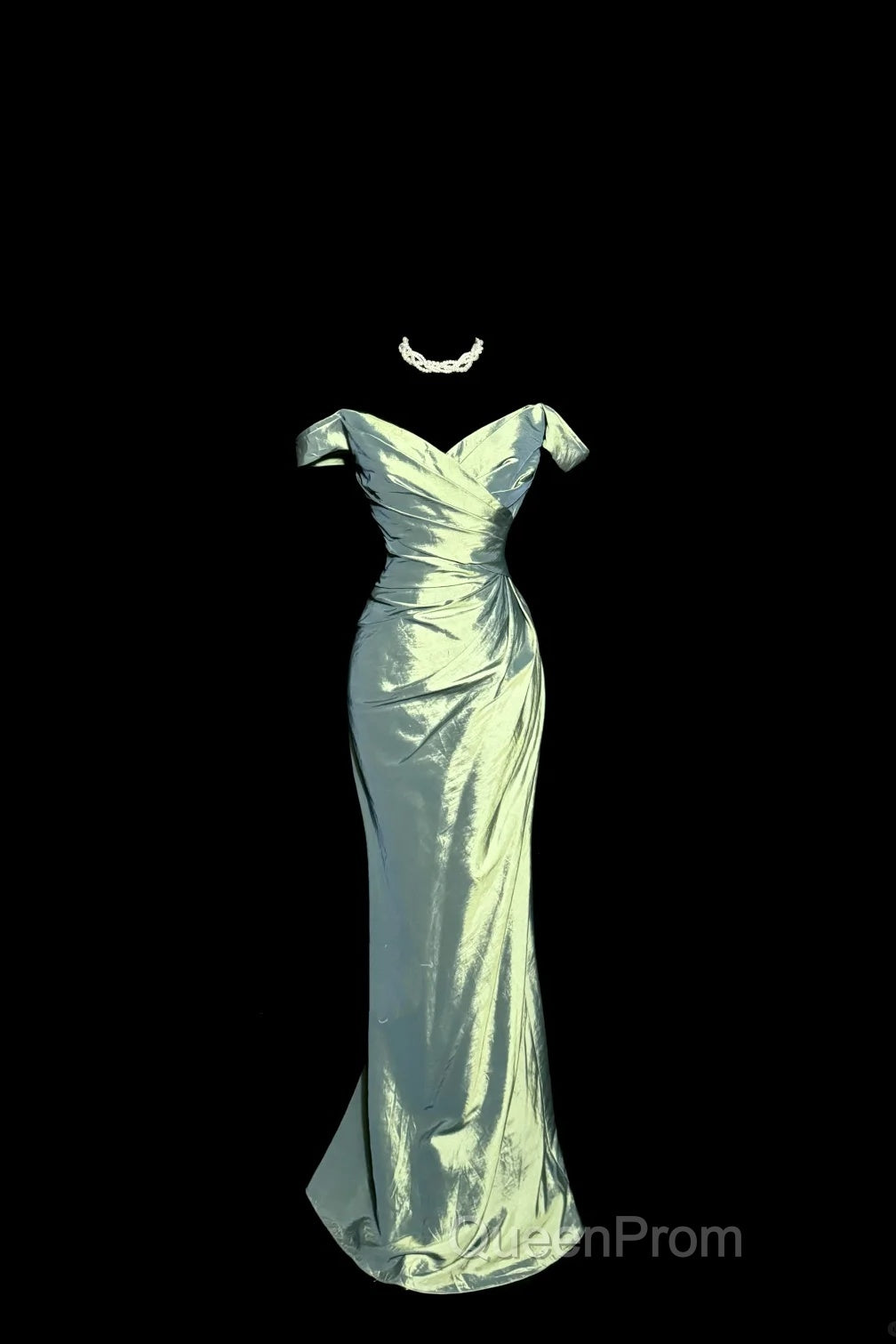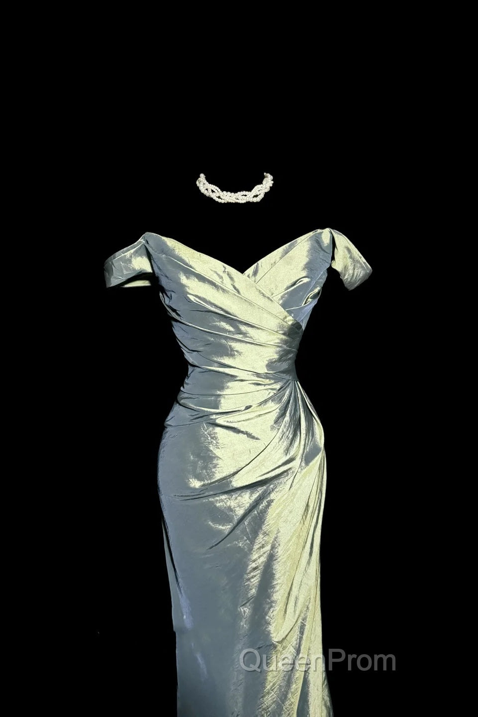 Vintage Mermaid Off The Shoulder Green Long Evening Prom Gown Fairy Evening Prom Dresses