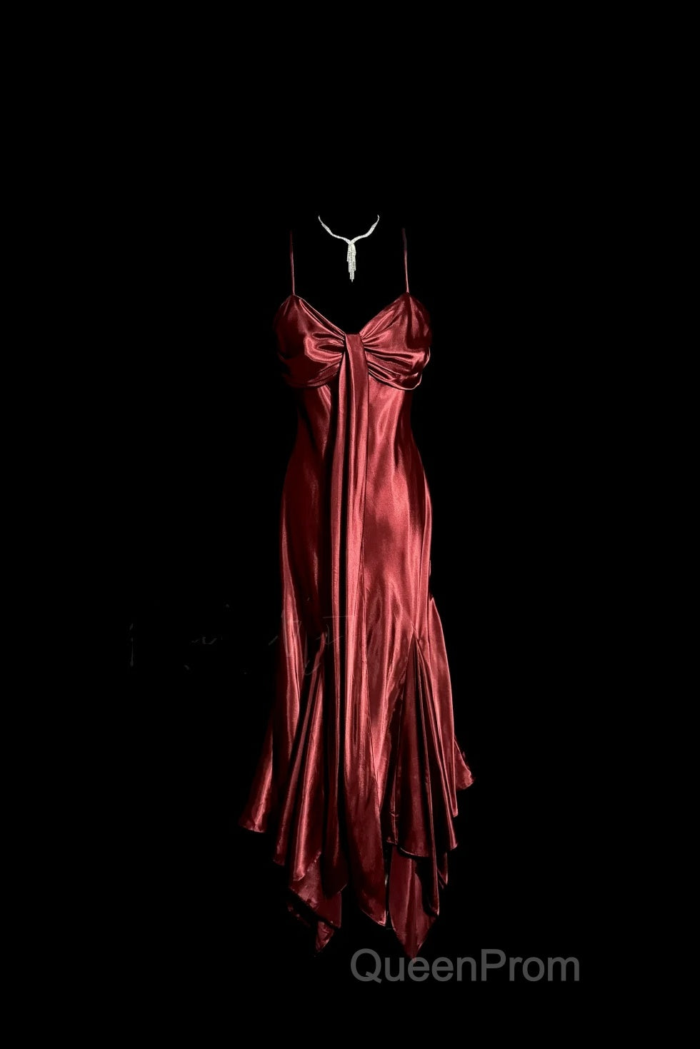 Vintage Mermaid Spaghetti Straps Satin Burgundy Evening Prom Gown Fairy Evening Prom Dresses