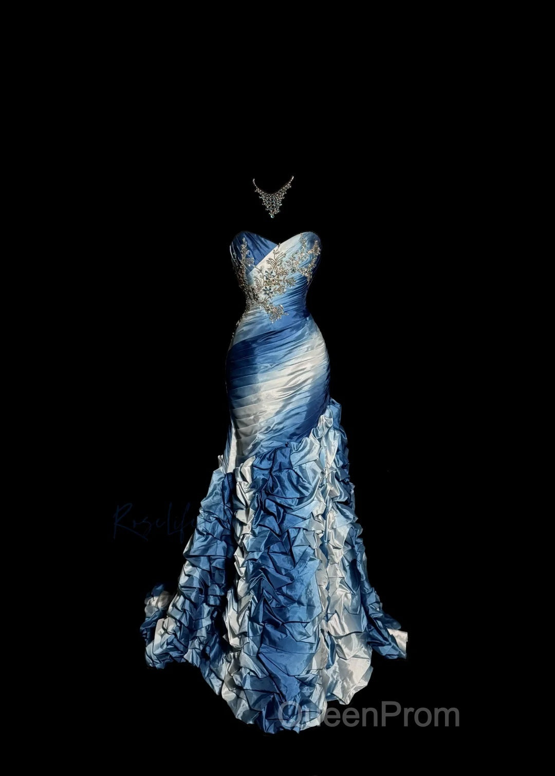Vintage Mermaid Sweetheart Sleeveless Long Blue Evening Prom Gown Fairy Evening Prom Dresses