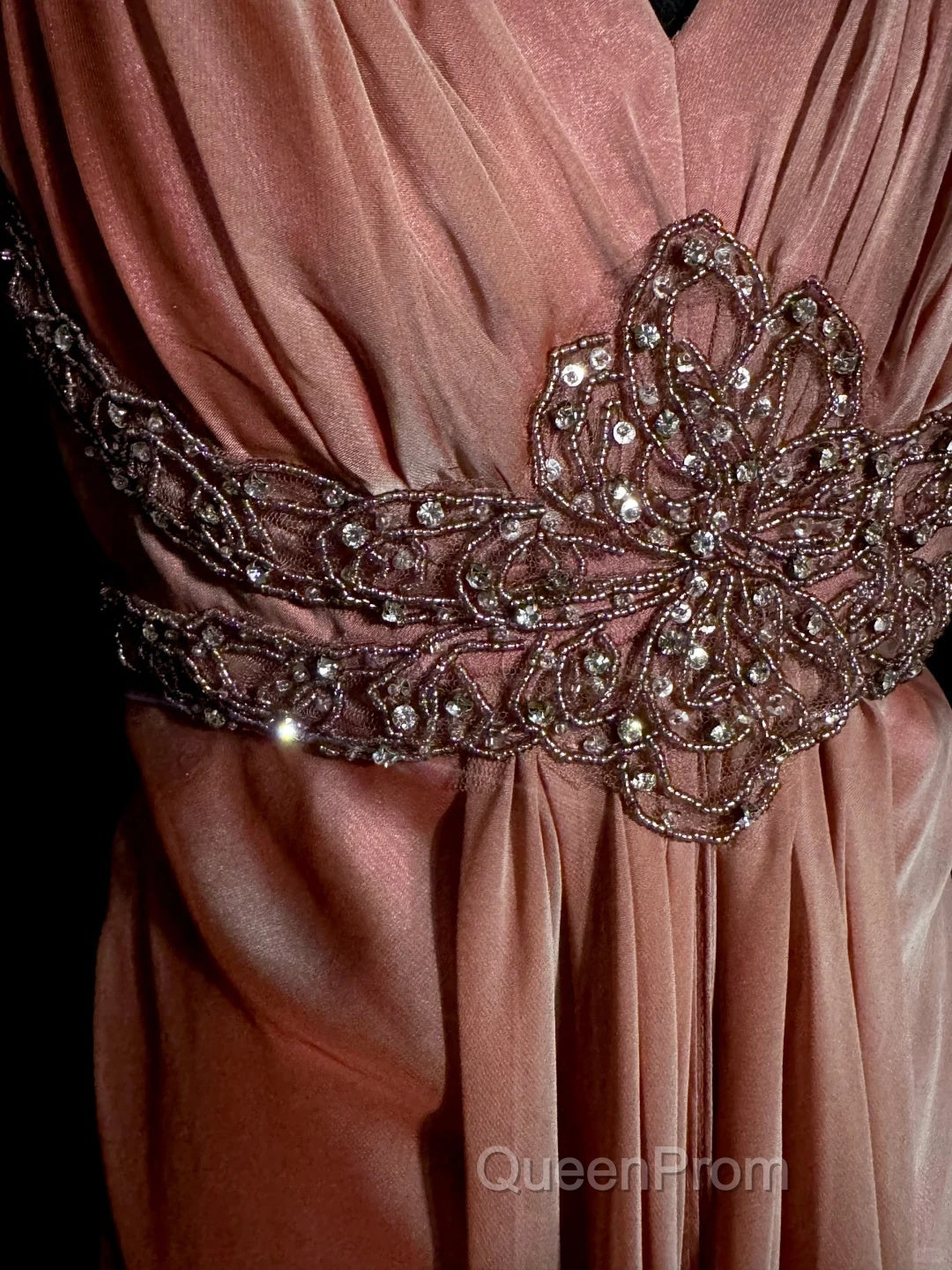 Vintage Mermaid V Neckline Pink Backless Long Evening Prom Gown Fairy Evening Prom Dresses