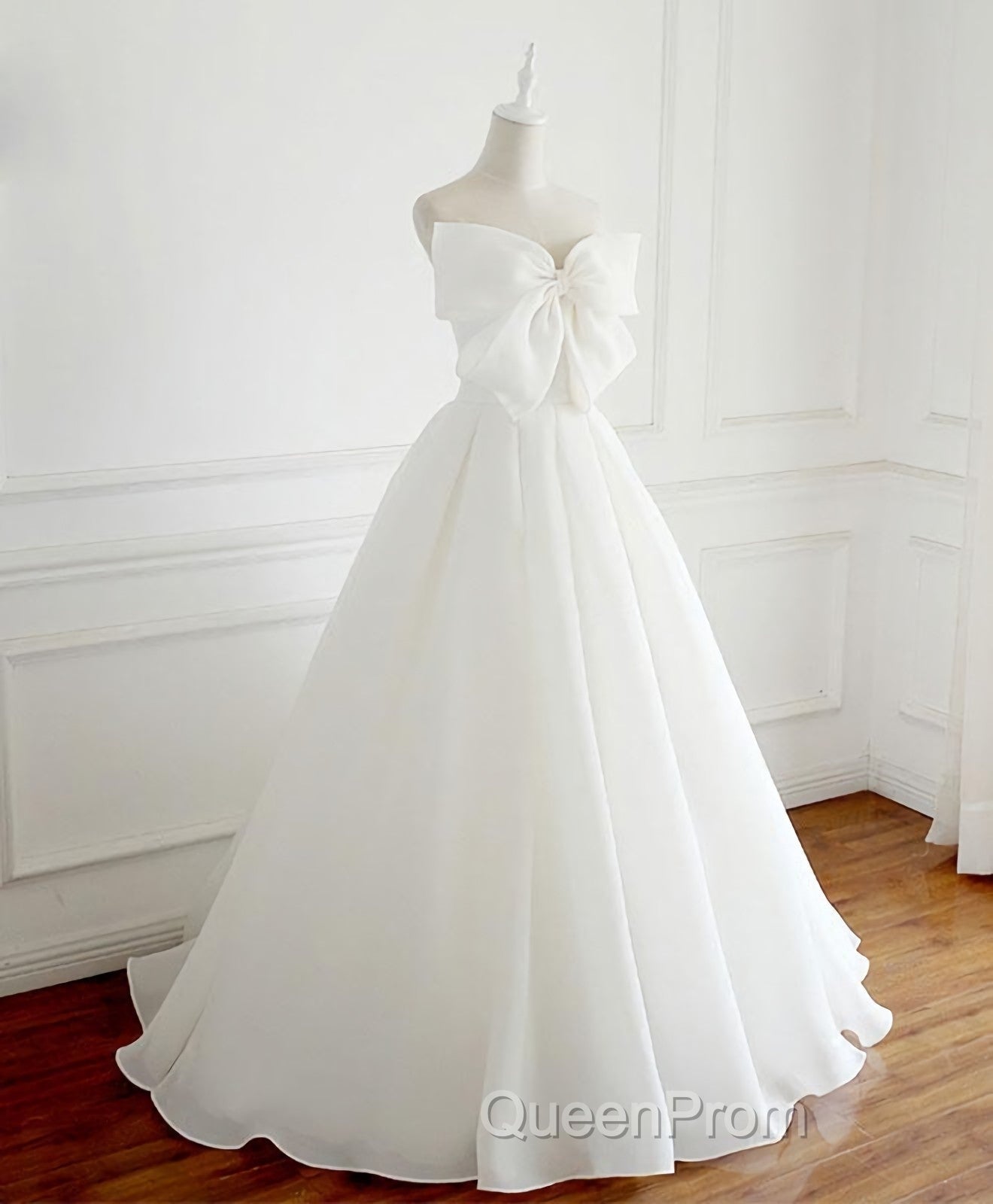 White Sweetheart Long Evening Prom Dresses, White Formal Dresses