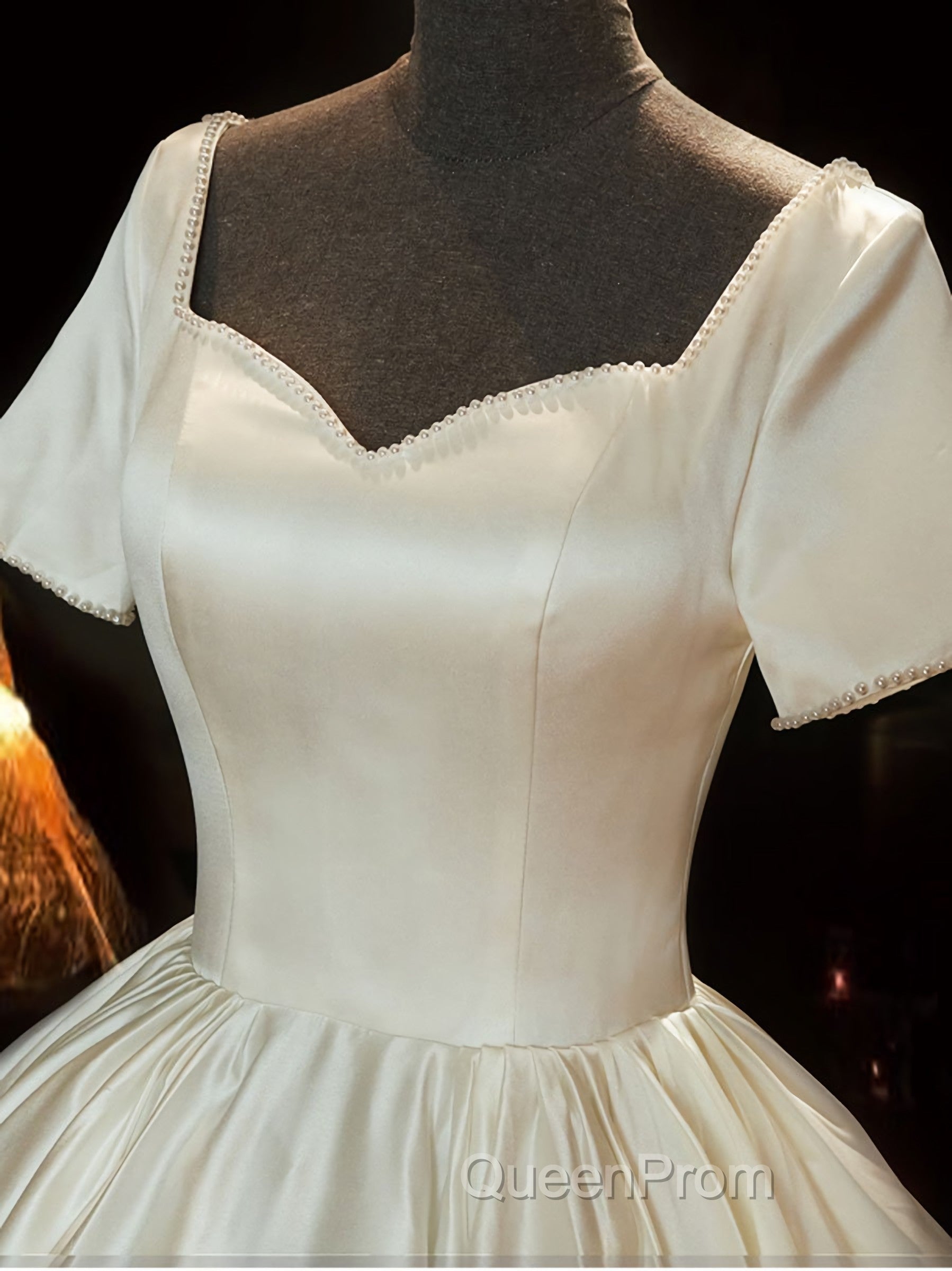 White Sweetheart Satin Long Bridal Dresses, White Wedding Dresses