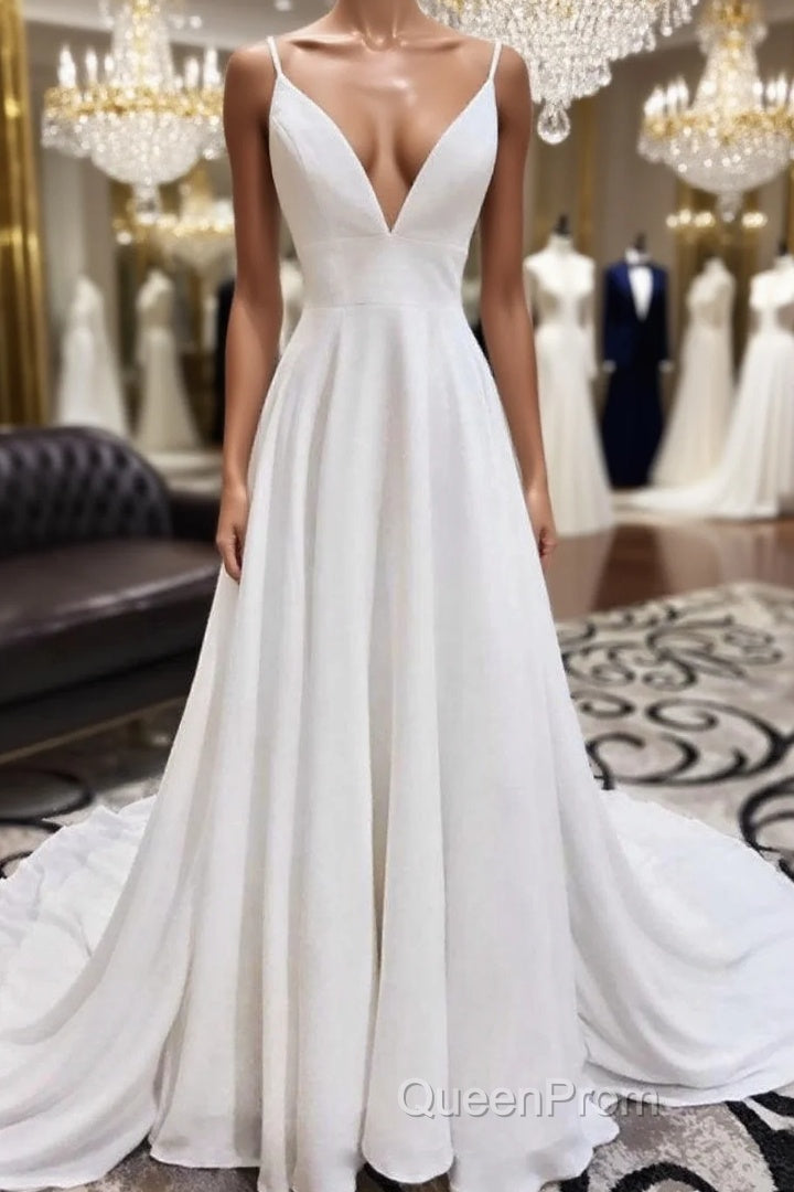White v neck chiffon long Evening Prom Dresses, white lace evening Dresses
