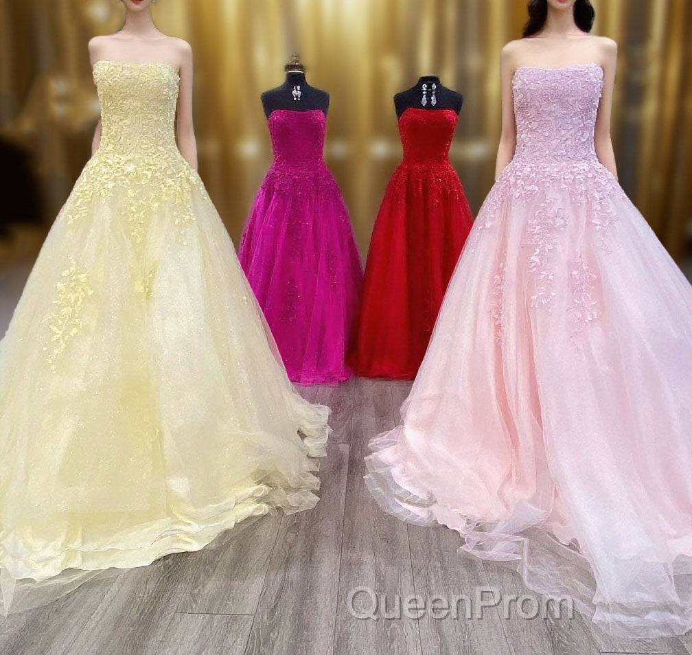 Wine Red Floral Lace Strapless A-Line Evening Prom Dresses