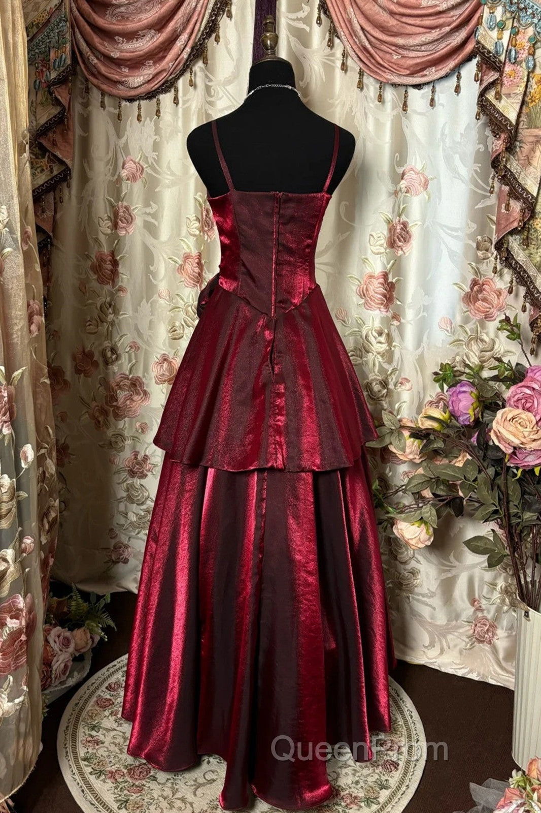 Wine Red Straps Sweetheart Vintage Style Party Dresses, Wine Red Evening Prom Dresses