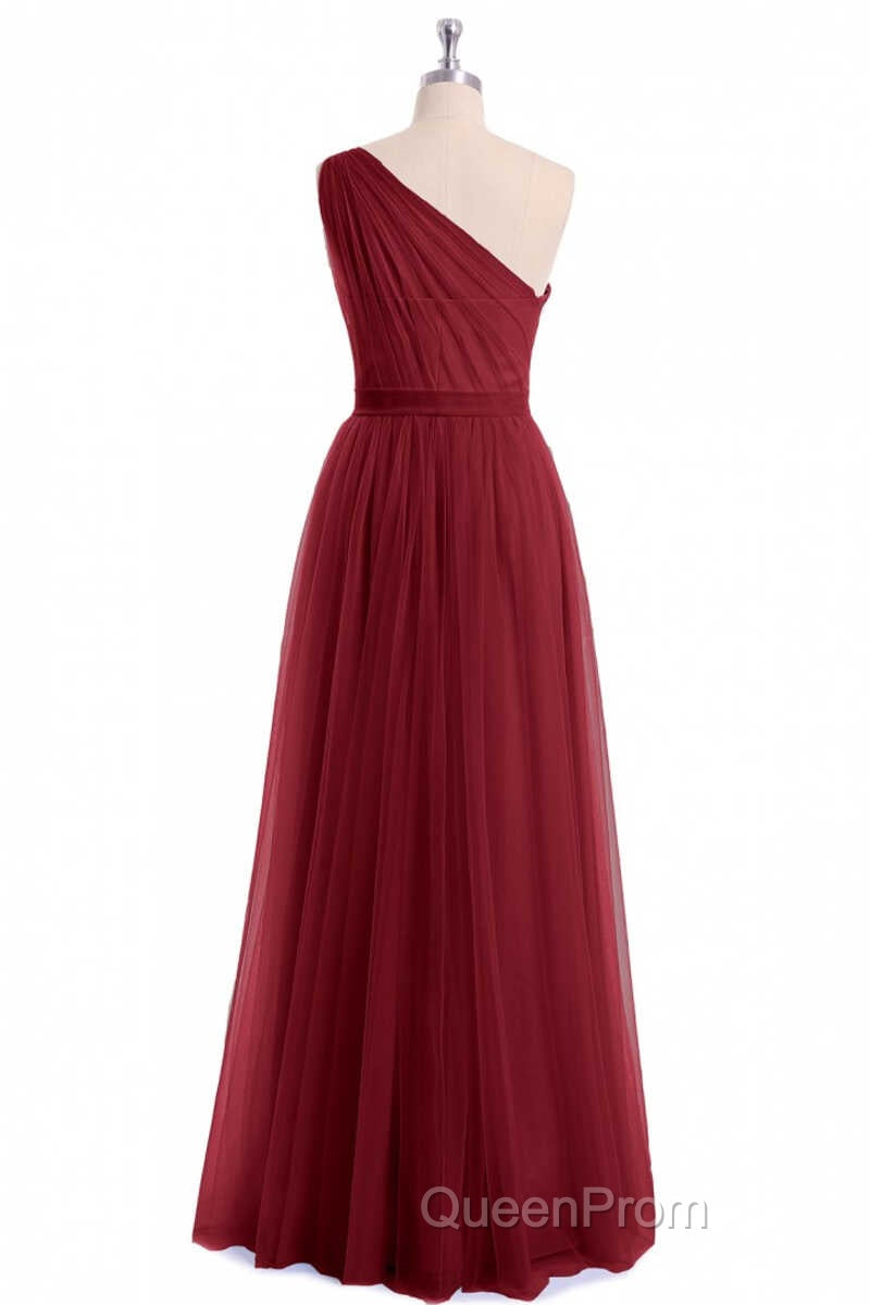 Wine Red Tulle One-Shoulder A-Line Bridesmaid Dresses