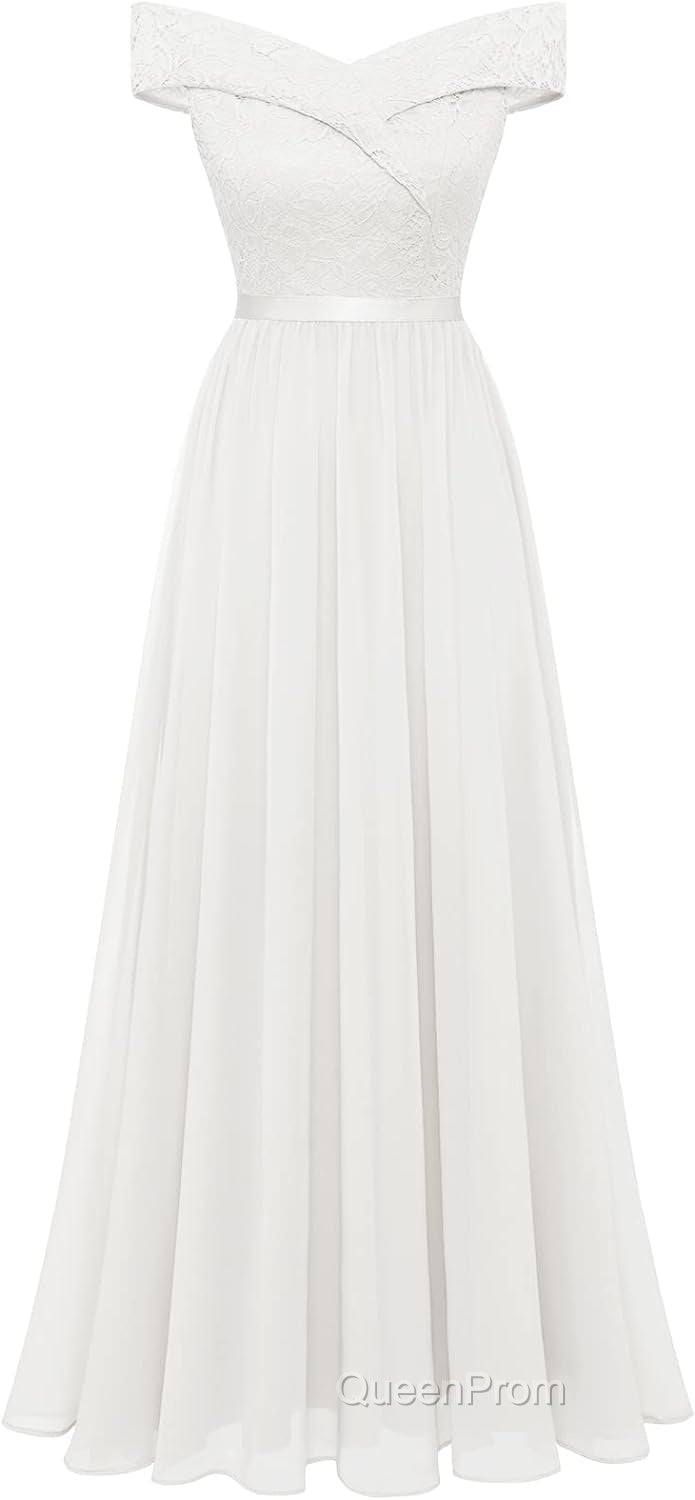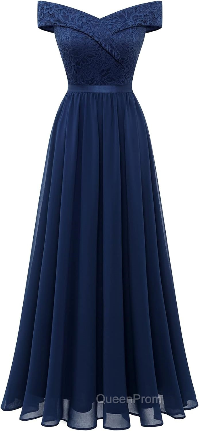 Womens Lace Bridesmaid Dresses A-Line Off Shoulder Floral Lace Chiffon Evening Prom Dresses
