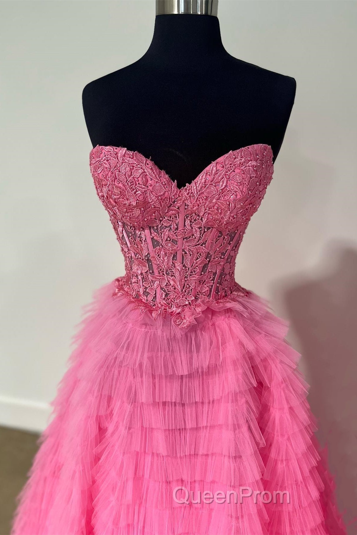 Yellow Lace-Up Floral Multi-Layers Strapless A-line Long Evening Prom Dresses